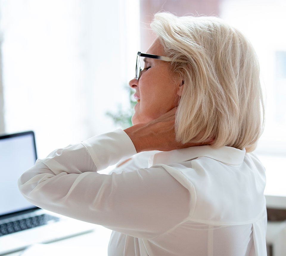 If the weight of your head is even slightly unbalanced on your neck, you may experience chronic muscle aches and neck fatigue without knowing why. Poor posture at work can also produce chronic neck pain. If you’re constantly tilting your head downward to read your smartphone or computer monitor, you can develop an overuse injury known as “text neck.”